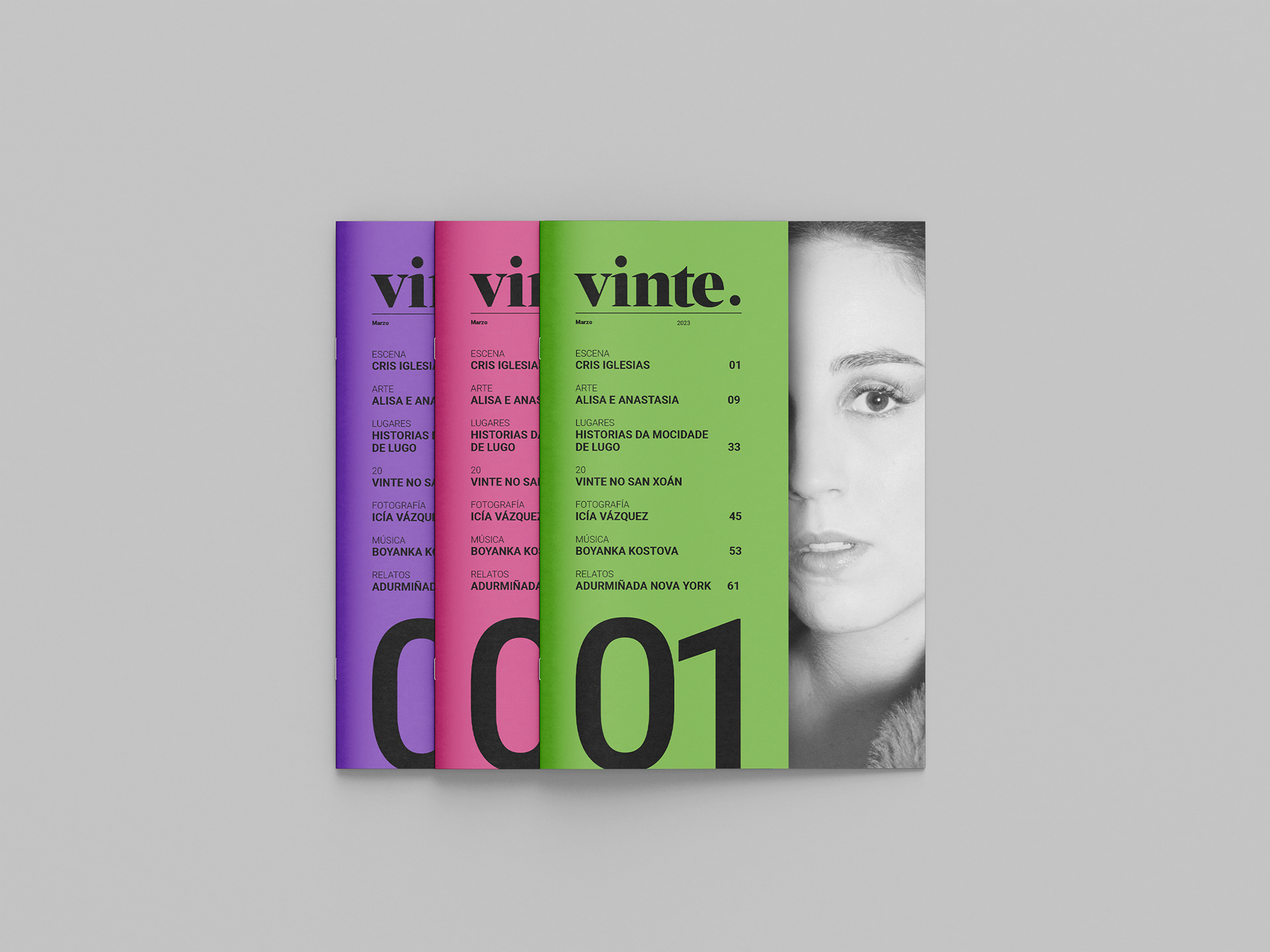 Vinte is a galician digital newspaper, focused on giving voice to a significant portion of galician society that does not feel represented in traditional media. Some of its fundamental pillars are diversity, everyday life, and youth, elements that are reflected in the design proposal of both the new branding and the physical version of the newspaper.